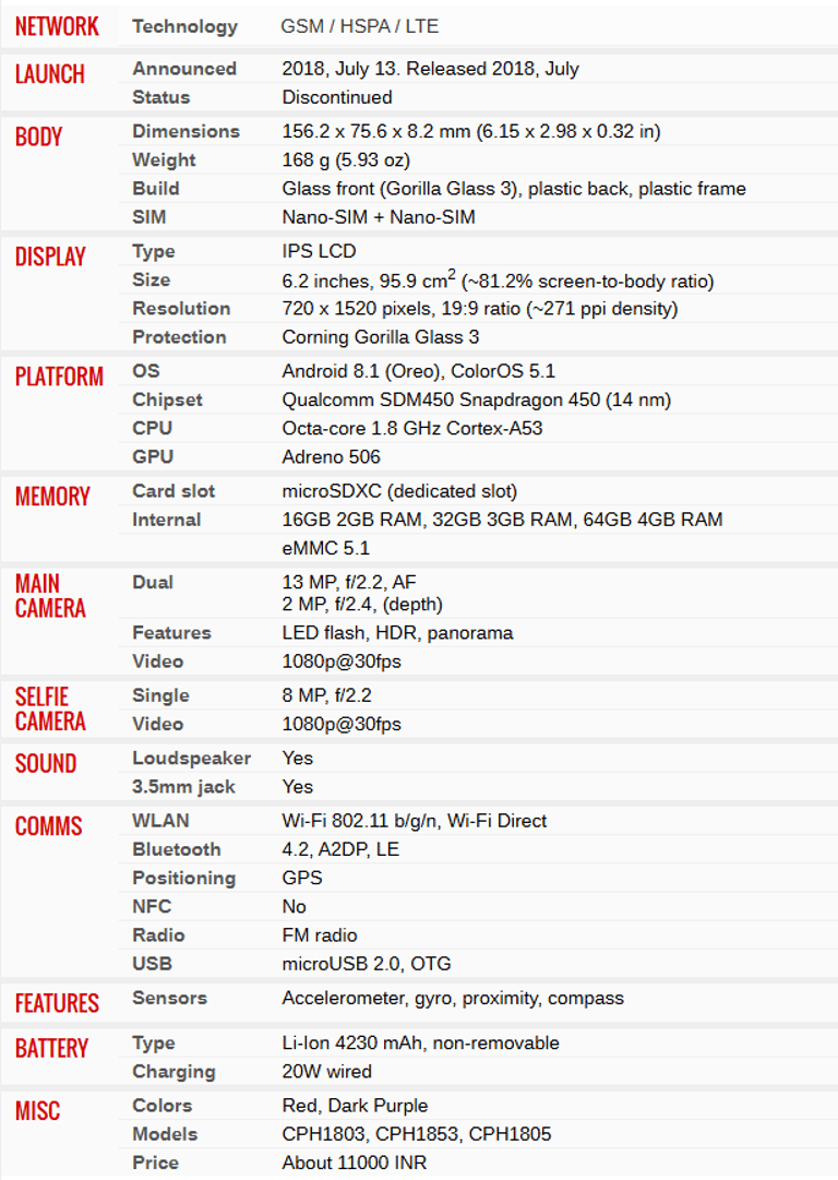 The Oppo A3s, released in July 2018, features a 6.2-inch IPS LCD display with a resolution of 720 x 1520 pixels. It runs on Android 8.1 (Oreo) with ColorOS 5.1. Under the hood, you’ll find the Qualcomm Snapdragon 450 chipset, an octa-core 1.8 GHz Cortex-A53 CPU, and Adreno 506 GPU. Keep reading this article to know about the Oppo A3s price in Bangladesh and its details.